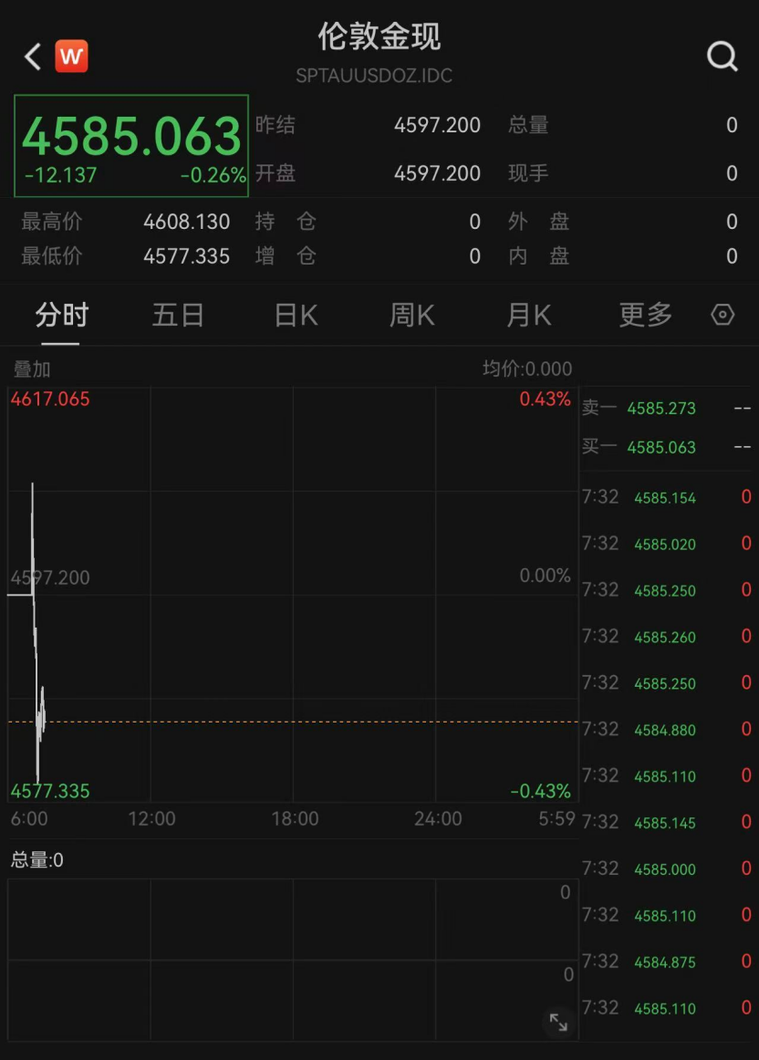 北京时间1月13日早盘,金银价格开盘跳水。伦敦现货黄金盘中失守4580美元/盎司;伦敦现货白银连续快速跌破85美元/盎司、84美元/盎司重要关口。